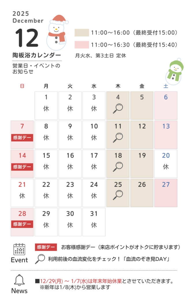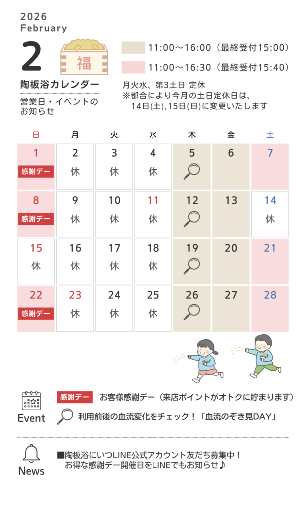 当店の温熱浴「陶板浴(とうばんよく」)の温度は約42~43℃とそれほど暑くなく、