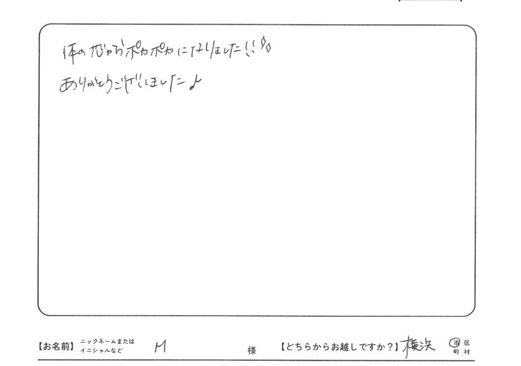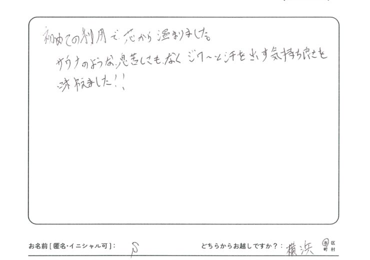 - レンタルセットの代わりに、ご自宅からジャージ等の汗をかいてもよい服を1着、大きめのバスタオル1枚、フェイスタオル2枚をお持ちいただいても構いません。