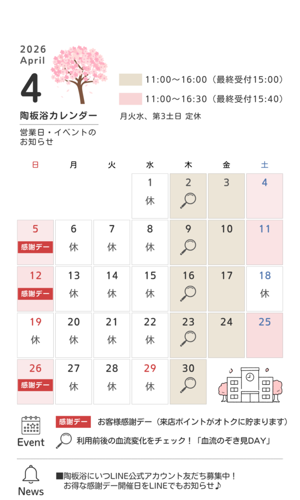 陶板浴室内や待合室スペースをお使いいただけますので、ご興味のある方は当店までお気軽にご相談ください。