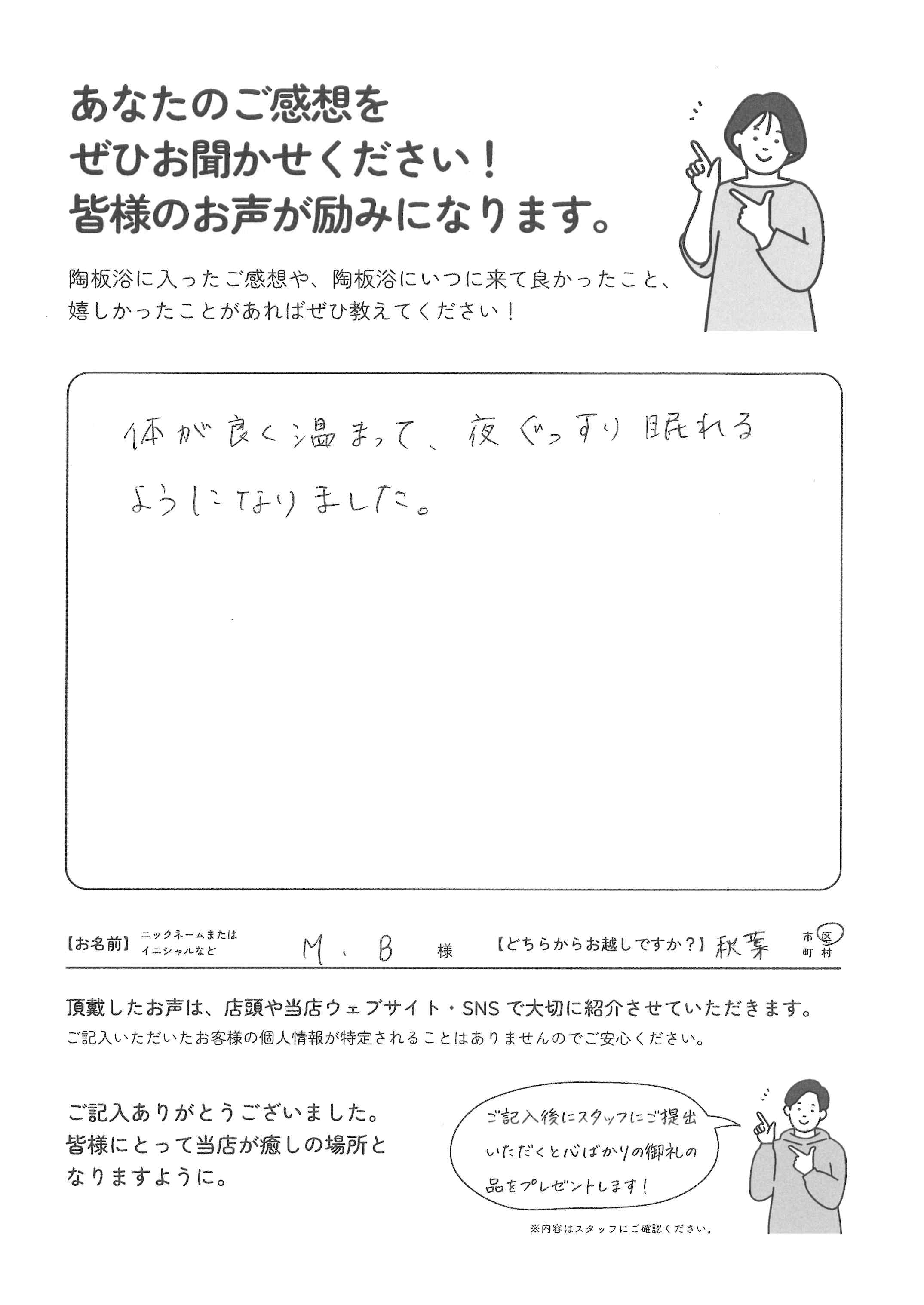 「体が良く温まって、夜ぐっすり眠れるようになりました」